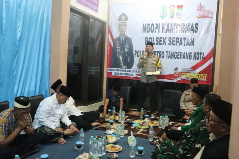 Tangerang – Polres Metro Tangerang Kota menggelar kegiatan Ngopi Kamtibmas bersama masyarakat di wilayah hukum Polsek Sepatan, Kamis (25/9/2025) malam. Acara yang berlangsung di Kantor Desa Mekar Jaya, Kecamatan Sepatan, Kabupaten Tangerang ini dihadiri sekitar 70 orang dari unsur Forkopimcam, tokoh agama, tokoh masyarakat, hingga perwakilan ormas.