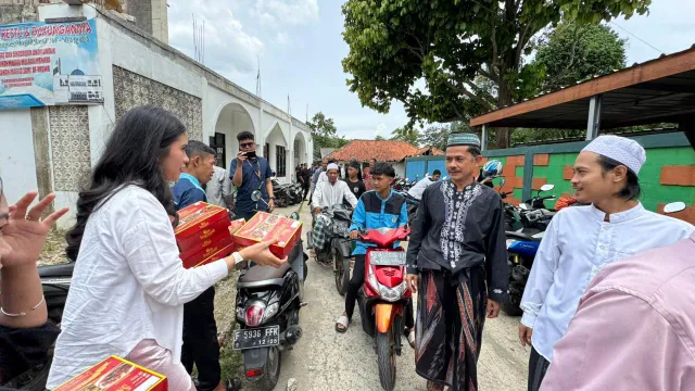 Ratusan paket nasi kotak dibagikan secara cuma-cuma kepada para jemaah Salat Jumat yang baru menunaikan ibadah, serta masyarakat umum, seperti pekerja, pedagang, dan warga yang melintas.